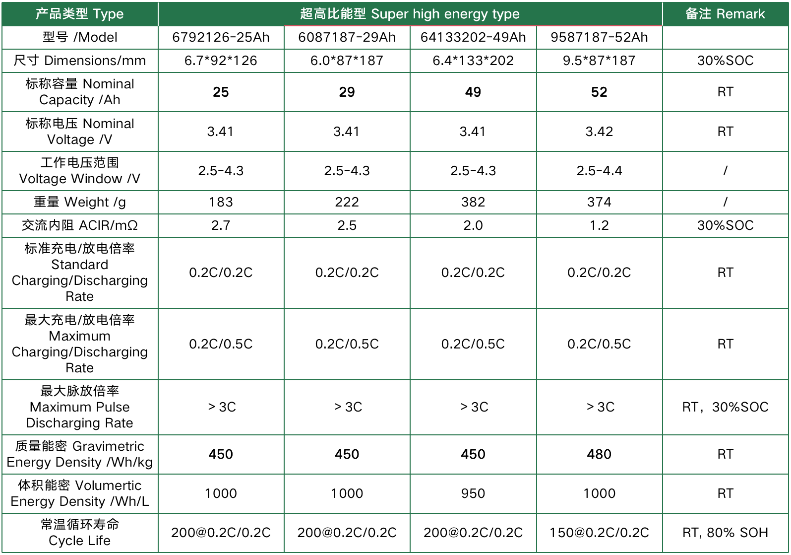 超高能密软包电池: 电芯能密:450~600 Wh/kg 产品应用:长航时飞行器、其他高能密应用场景